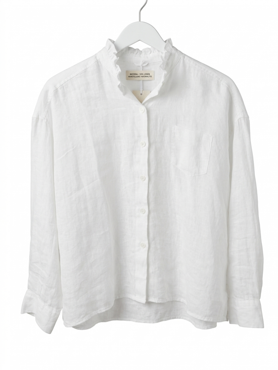 NARLI Leinenbluse Rüsche-Kragen weiß